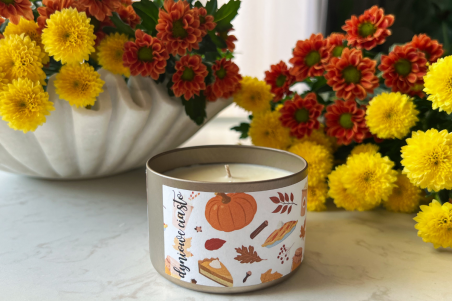 Poczuj zapach ciepłego, świeżo upieczonego dyniowego ciasta unoszącego się w całym domu. Zapach ten otula wnętrze bogactwem aromatów: kremowe nuty mleczne łagodzą słodycz karmelu i miodu, soczysta skórka pomarańczy dodaje świeżości, a korzenne akcenty imbiru, gałki muszkatołowej, laski cynamonu i goździków wprowadzają przytulne, jesienne ciepło.