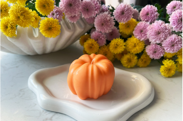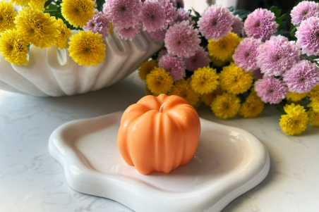 Velvet Pumpkin to dekoracyjna świeca w kształcie dyni, która pachnie już zanim ją zapalisz. Pierwsze nuty korzennego anyżu i karmelizowanego cukru klonowego otulają wnętrze słodkim, ciepłym aromatem, w sercu rozkwita dynia z aksamitnym karmelem i aromatycznymi goździkami, a delikatna wanilia z subtelnym imbirem dopełnia całość, tworząc cozy, jesienny zapach, który koi zmysły i wprowadza przytulną atmosferę.